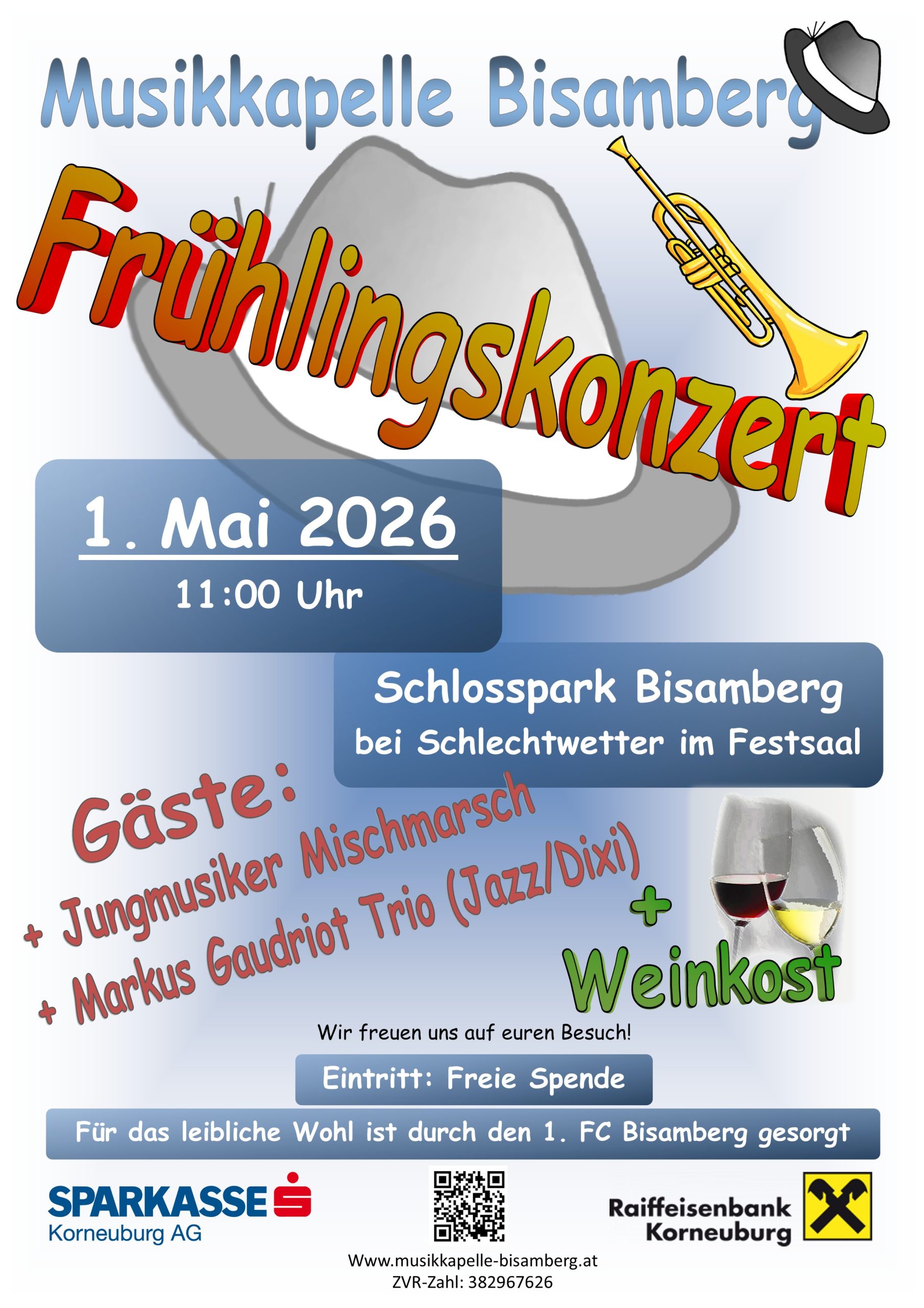 Gleich wie in den letzten Jahren wird die Musikkapelle Bisamberg auch diesen Mai wieder mit ihrem Frühlingsfrühschoppen einläuten. Am 1. Mai ab 11 Uhr verwandelt sich der Schlosspark in eine Festkulisse, in der Musikliebhaber und Genießer gleichermaßen auf ihre Kosten kommen.